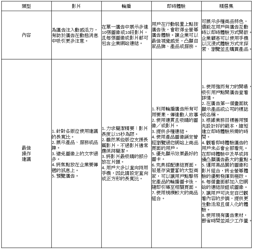 官方網站:https://www.facebook.com/business/ads/ad-formats